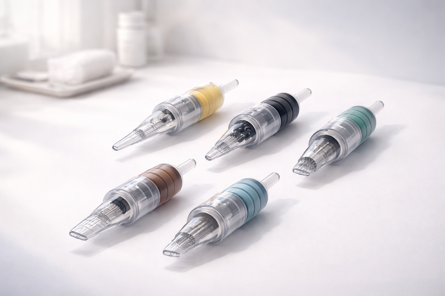 Kartuş iğneler; iğne dizilim geometrisi, iğne sayısı, iğne çapı ve taper (uç inceliği/uzunluğu) gibi parametrelerle farklı performans karakterleri üretir. Doğru tip seçimi; çizgi netliği, gölgeleme yumuşaklığı, pigment/ink yerleşimi ve cilt travması yönetimi açısından kritik bir kalite standardıdır.
