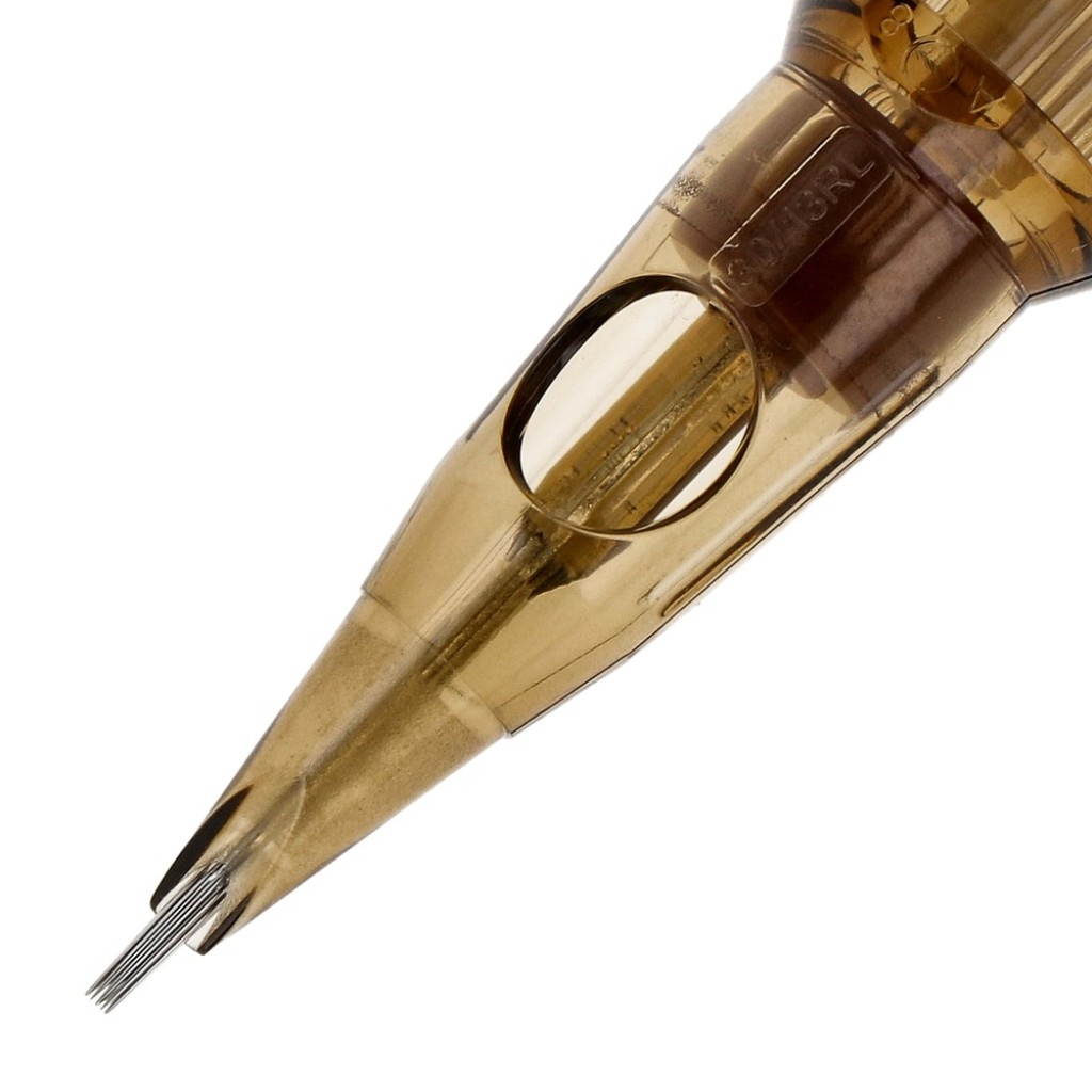 Kwadron 1013 RLLT (13RL), Round Liner dizilim ve Long Taper uç yapısıyla kalın ve belirgin çizgi, net kontur ve outline uygulamaları için tasarlanmış tek kullanımlık kartuş dövme iğnesidir.