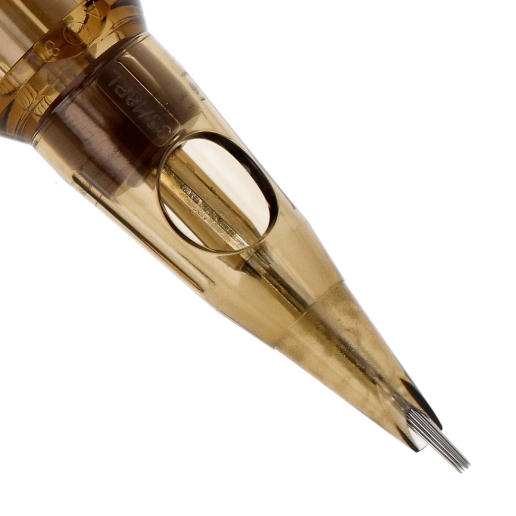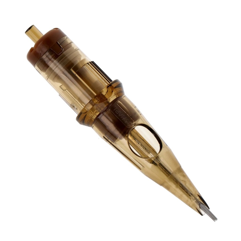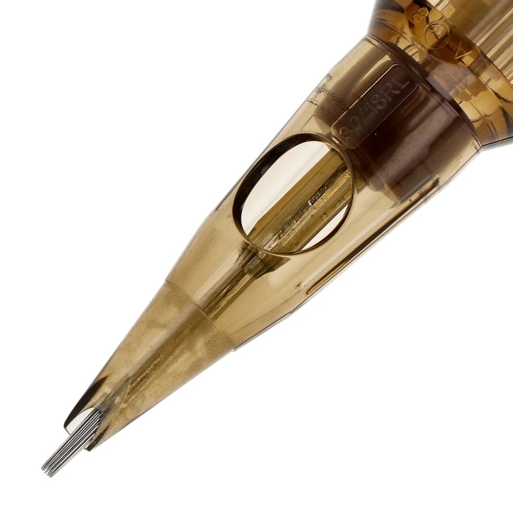 Kwadron 1018 RLLT (18RL), Round Liner dizilim ve Long Taper uç yapısıyla kalın çizgi, güçlü kontur ve belirgin outline uygulamaları için tasarlanmış tek kullanımlık kartuş dövme iğnesidir.