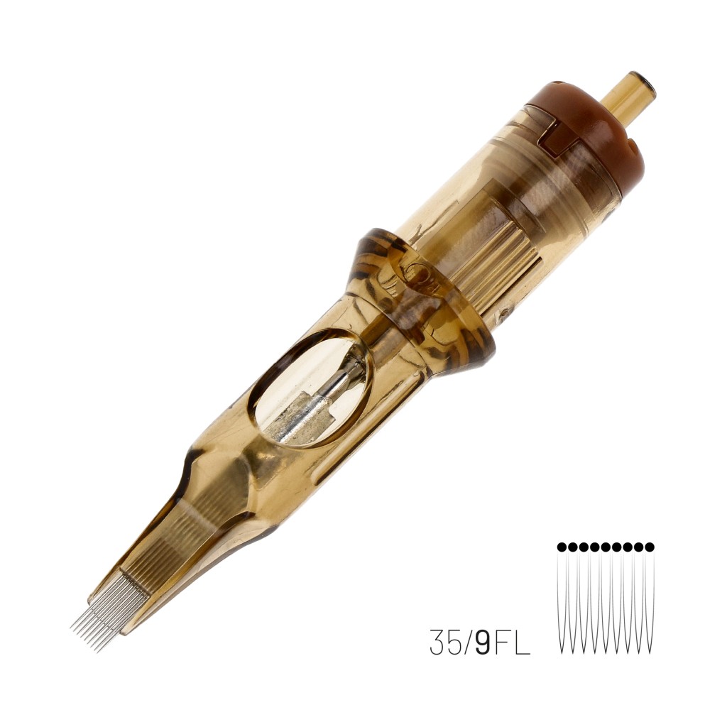 Kwadron 1209 FLLT (9FL), Flat dizilim ve Long Taper uç yapısıyla kontrollü dolgu, lineer pigment yerleştirme ve keskin kenarlı gölgelendirme uygulamaları için tasarlanmış tek kullanımlık kartuş dövme iğnesidir.