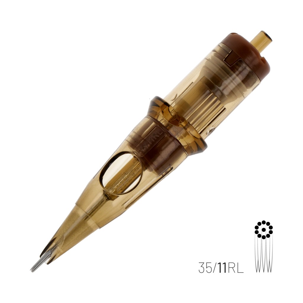 Kwadron 1211 RLLT (11RL), Round Liner dizilim ve Long Taper uç yapısıyla belirgin çizgi, güçlü kontur ve net outline uygulamaları için tasarlanmış tek kullanımlık kartuş dövme iğnesidir.