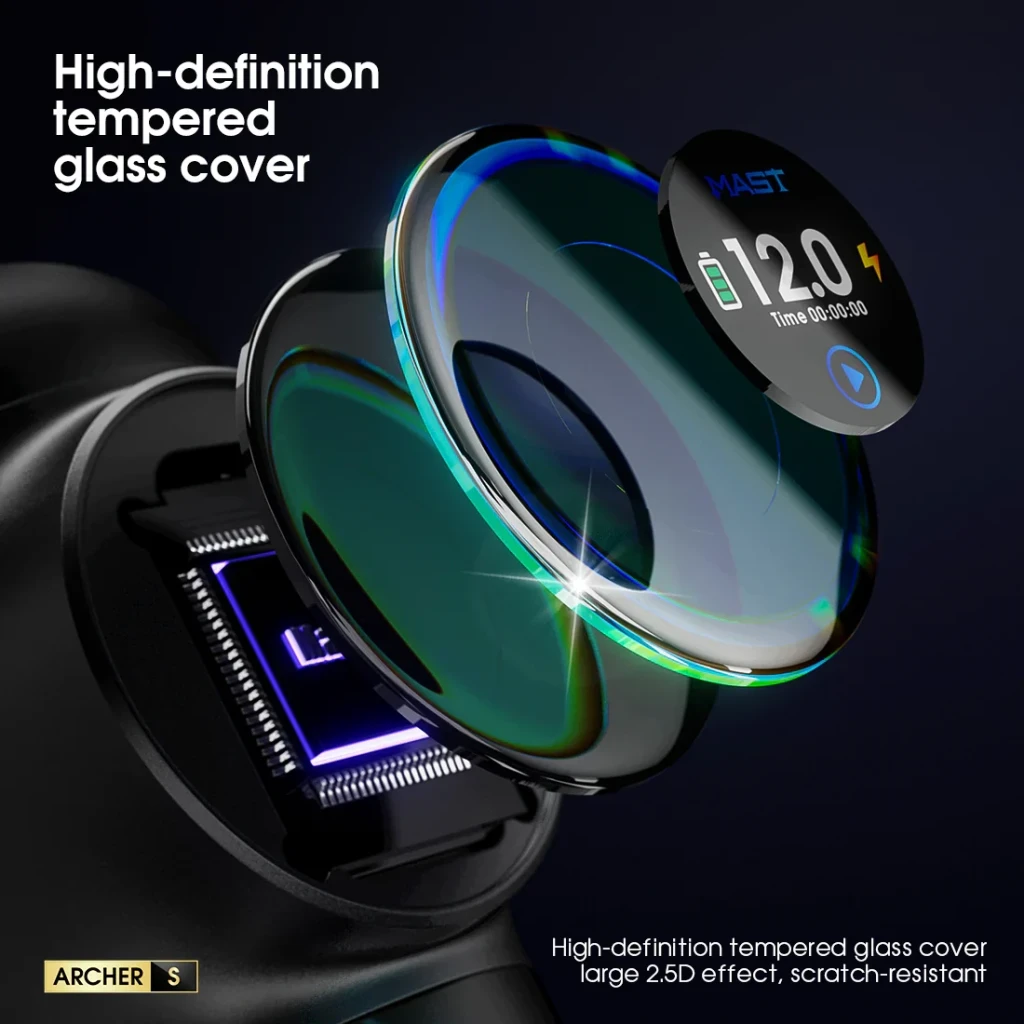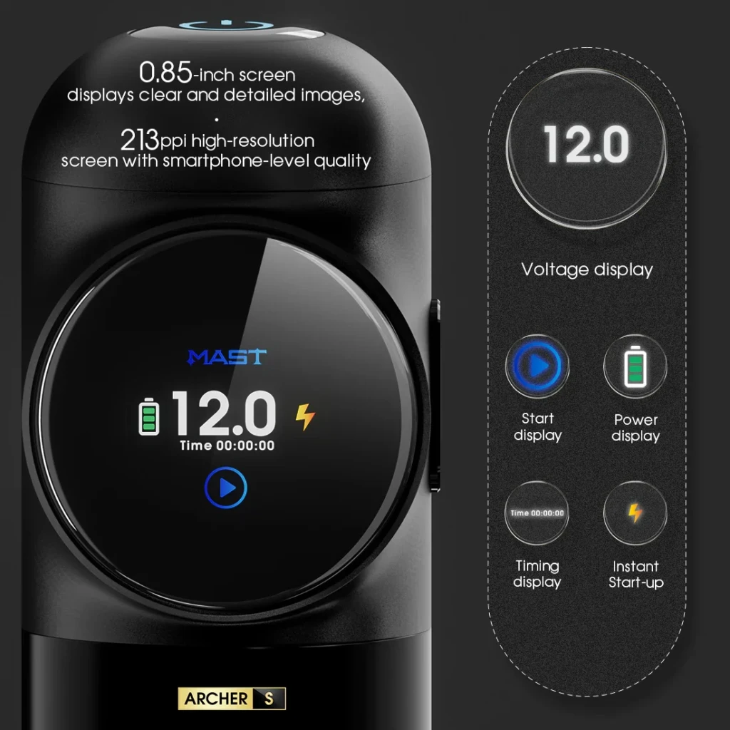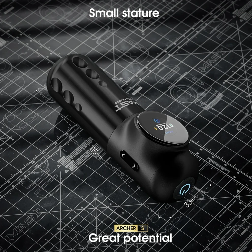 Mast Archer S Purple & Black Kablosuz Dövme Makinesi, 4.2 mm stroke uzunluğu ve yüksek devirli fırçasız motoru ile profesyonel kullanım için tasarlanmış kablosuz pen dövme makinesidir. Kompakt gövde yapısı ve çıkarılabilir batarya modülü ile uzun seans planlamalarına uygundur.