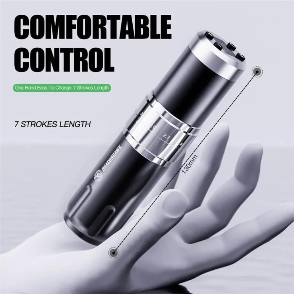 Mast Fold 3 Kablosuz Dövme Makinesi | 7 Stroke 2.4–4.2mm | 2 Pil, kablosuz kullanım için geliştirilmiş profesyonel dövme makinesidir. 2.4–4.2 mm aralığında 7 farklı değiştirilebilir stroke seçeneği, çizim (liner), gölgelendirme (shader) ve dolgu uygulamalarında farklı teknik planlamalara uygun kurulum imkânı sağlar. L / S modları ile çalışma senaryosuna göre pratik geçiş sunar.