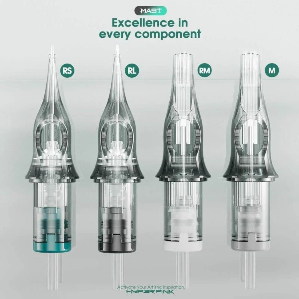 Mast Hyperink 1005 RS 5RS Medium Taper Kartuş Dövme İğnesi – 20’li Steril, gölgelendirme (shading), yumuşak ton geçişleri ve küçük alan dolgu uygulamaları için tasarlanmış Round Shader (5RS) konfigürasyonuna sahip profesyonel kartuş iğnedir. EO (Etilen Oksit) gaz ile steril edilmiştir ve tek kullanımlıktır.
