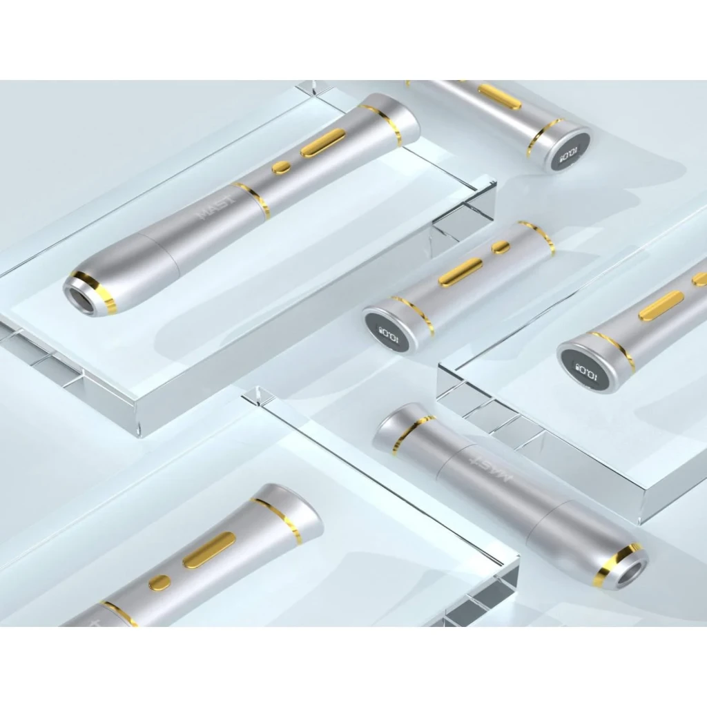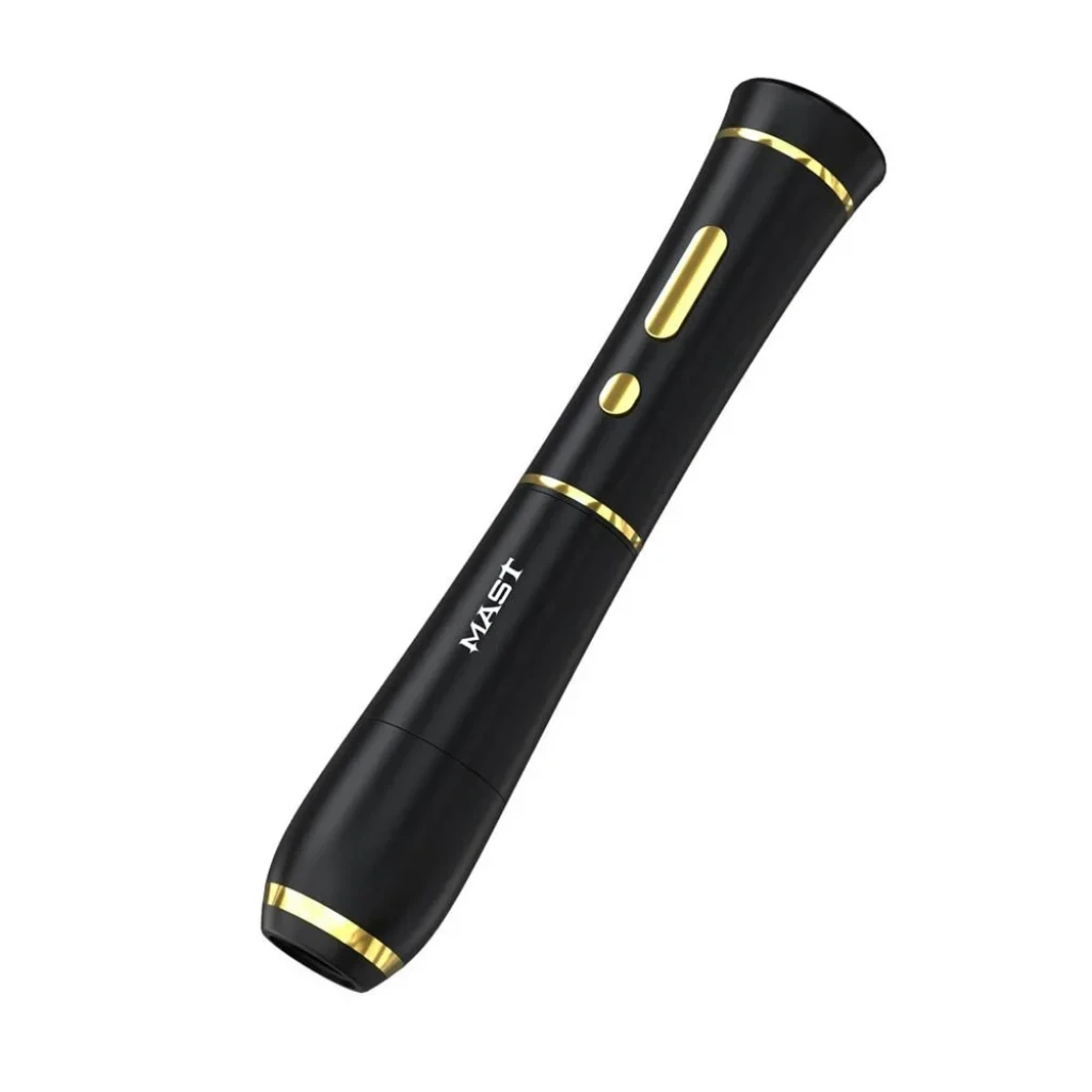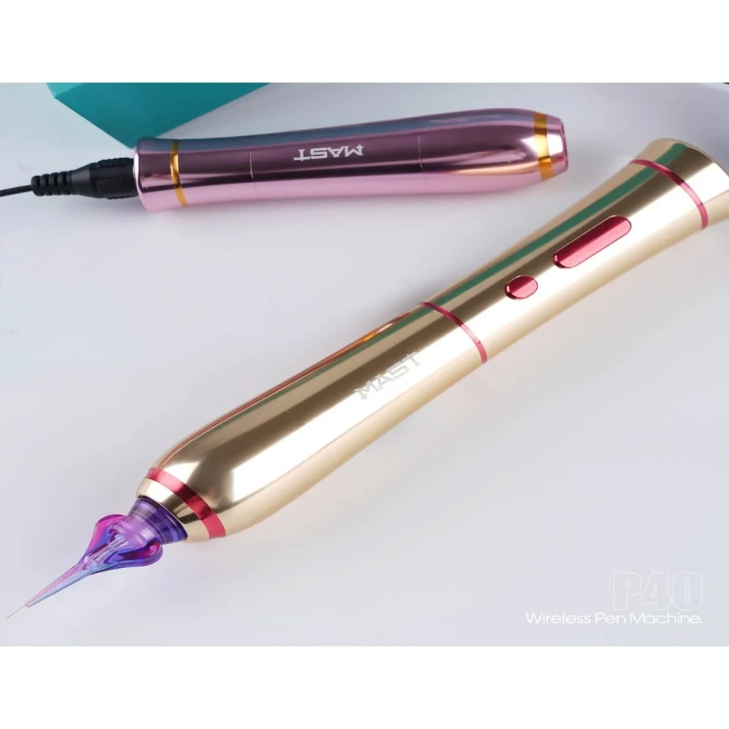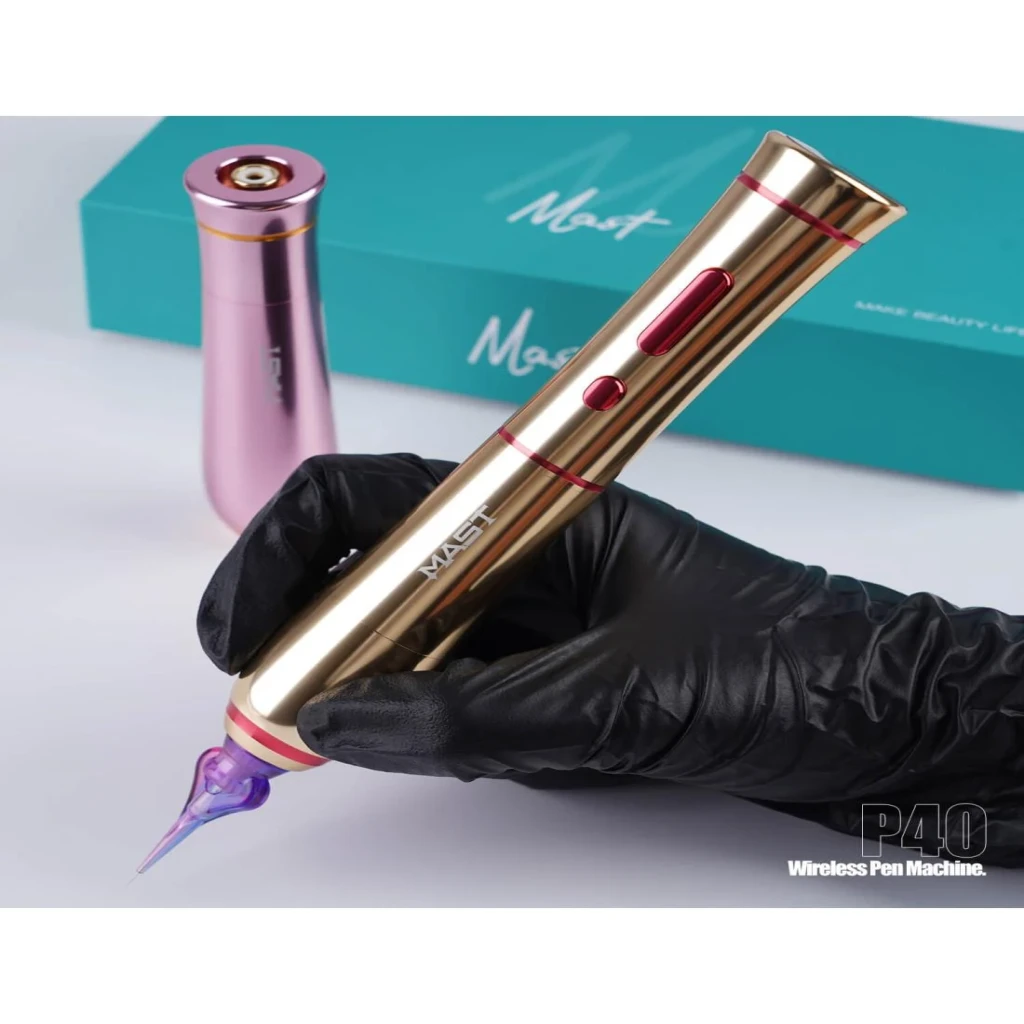 Mast P40 PMU Kablosuz Kalıcı Makyaj Makinesi – Siyah, profesyonel kalıcı makyaj uygulamaları için tasarlanmış kablosuz pen tipi bir cihazdır. 2.5 mm stroke uzunluğu ve ayarlanabilir voltaj aralığı sayesinde dudak, kaş, eyeliner ve SMP uygulamalarında kontrollü ve stabil çalışma imkânı sunar.