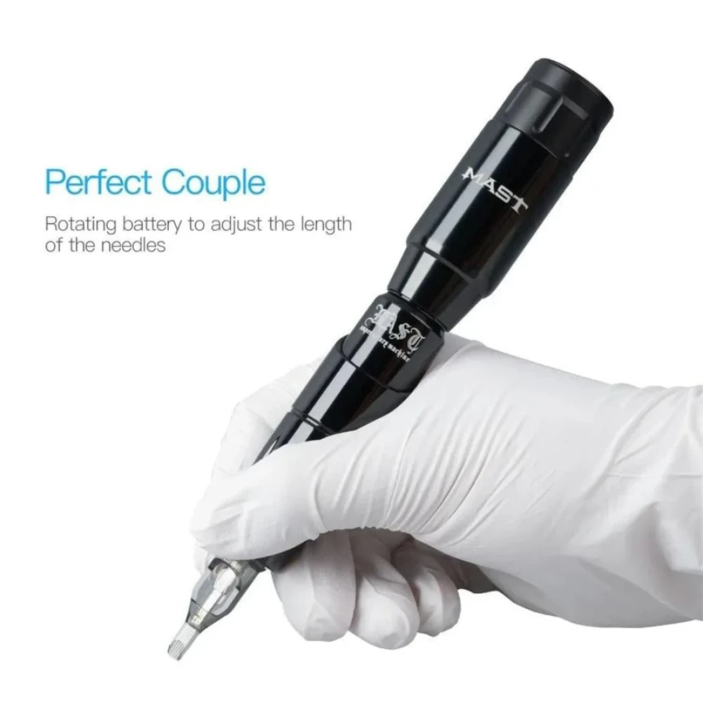 Mast Tour Black 3.5 mm Stroke Bataryalı Rotary Pen Dövme Makinesi (P112), kompakt yapısı ve entegre bataryasıyla mobil ve stüdyo kullanımına uygun profesyonel dövme makinesidir. 3.5 mm stroke uzunluğu ve 9.000 rpm (8V) motor hızı, kontur, gölgelendirme ve renk doldurma uygulamalarında dengeli bir çalışma karakteri sunar.