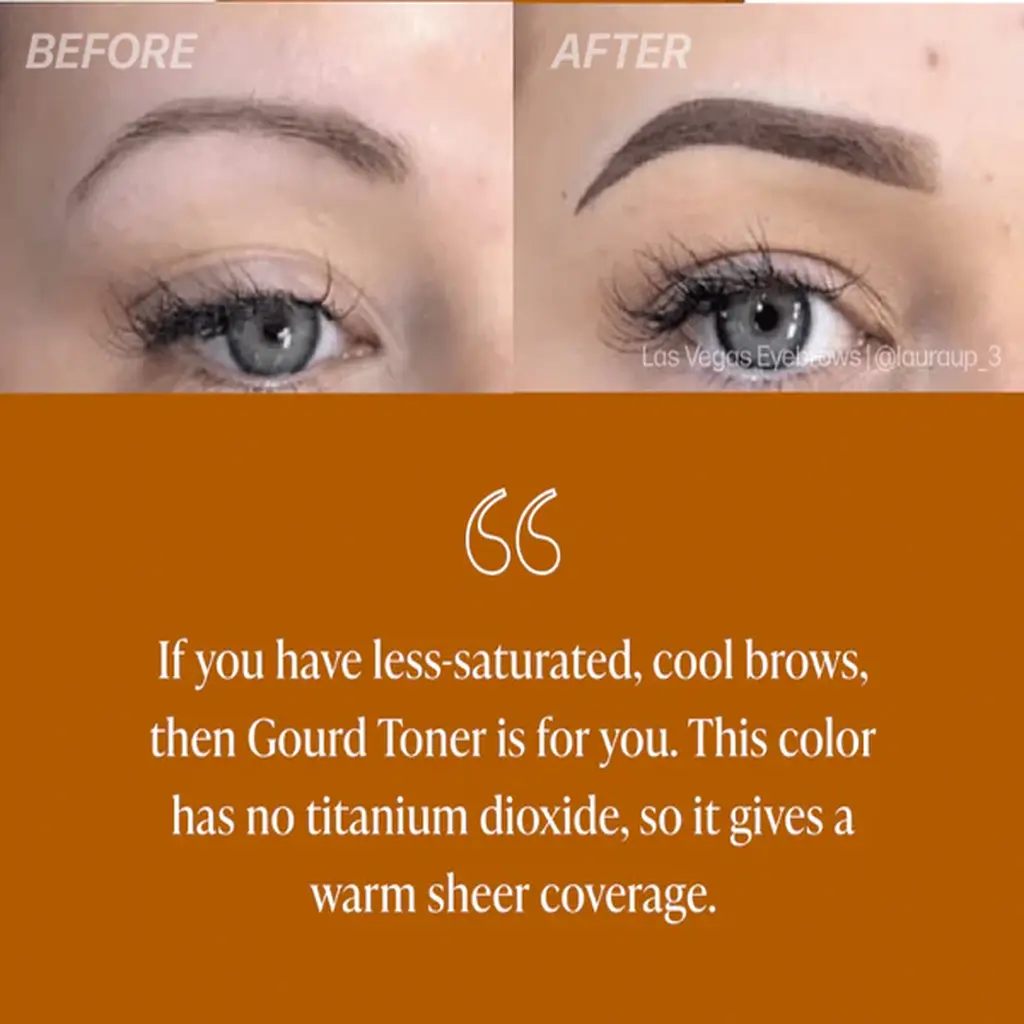 Perma Blend Gourd Toner, kaşlarda yeşile/maviye kayan soğuk görünümleri ısıtmak ve nötralize etmek için geliştirilmiş, Titanium Dioxide içermez (TiO₂-free) yapıda orta-koyu turuncu bir tonerdır. Şeffaf/ince kapatıcılı tonlama ile kaş rengini doğal sıcaklığa taşır; powder/ombre ve makine teknikleriyle uyumludur.