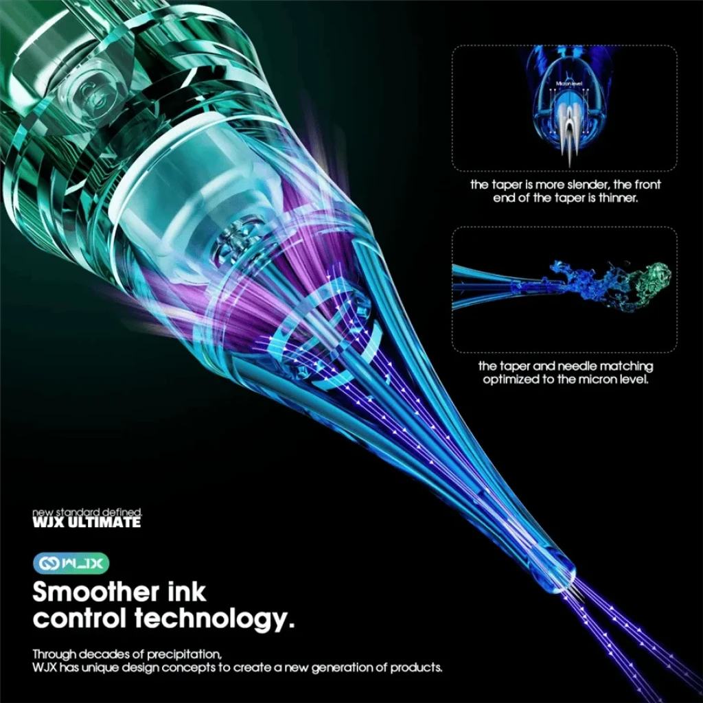 WJX Ultimate 1011 RS 11RS Long Taper Kartuş Dövme İğnesi (20 Adet), round shader (RS) dizilime sahip profesyonel kartuş dövme iğnesidir. 11RS konfigürasyonu ve long taper uç yapısı ile gölgelendirme ve tonlama uygulamalarında kontrollü pigment dağılımı hedefler.